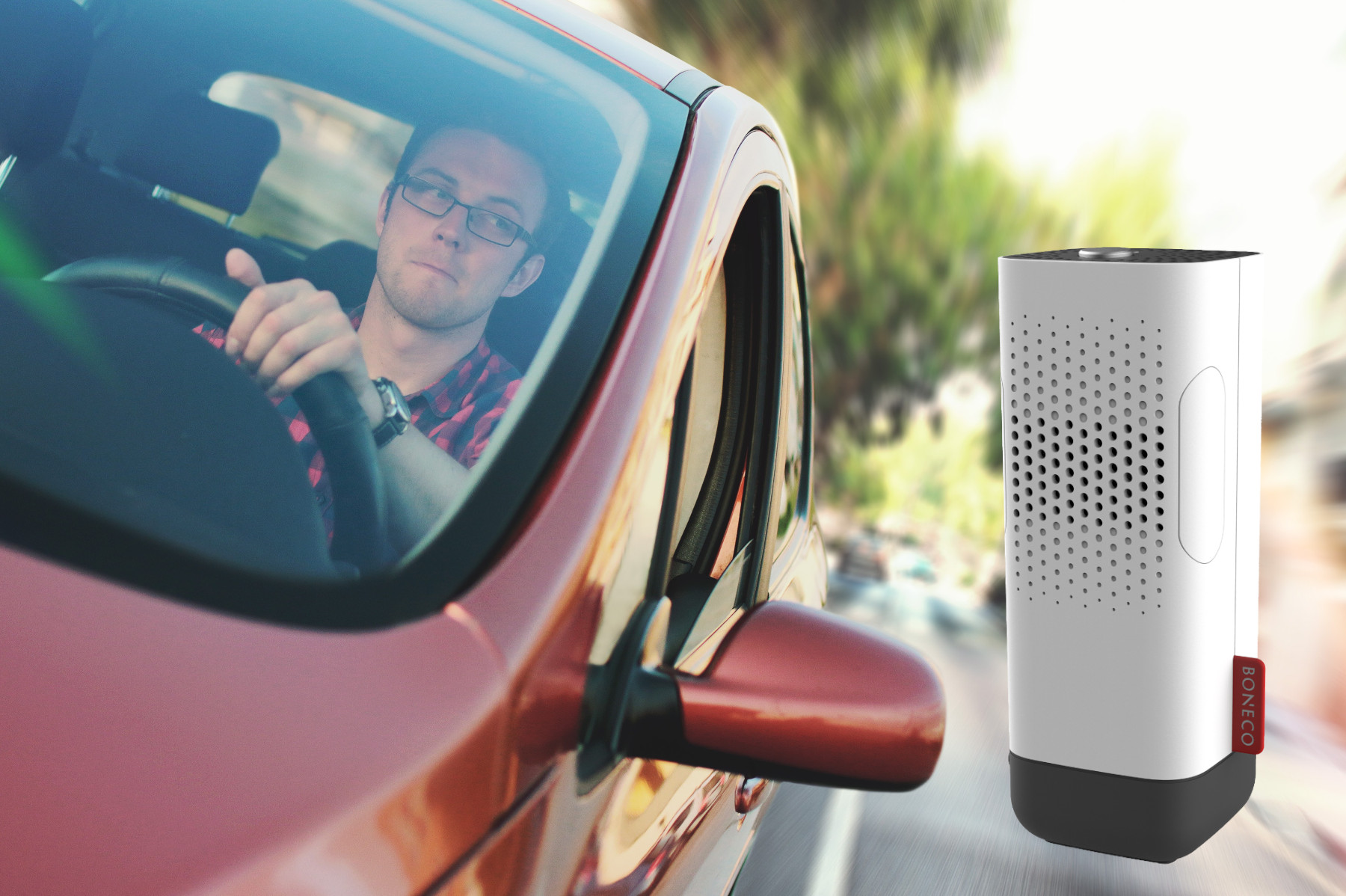 Przykładem oczyszczacza samochodowego, który nie tylko pomaga oczyszczać powietrze w aucie, ale wpływa na jego jakość poprzez wbudowany jonizator, jest BONECO P50. Wytwarzane przez niego jony ujemne oczyszczają powietrze przyciągając cząsteczki w nim zawieszone. Duża zawartość jonów ujemnych w powietrzu pozytywnie wpływa na nasze zdolności poznawcze, jasność myślenia. Subiektywnie odczuwamy to jak świeżość i rześkość powietrza. Podobną do tej znanej nam z obecność w lesie, czy nad morzem, gdzie naturalnie występuje duża ilość jonów ujemnych w powietrzu.